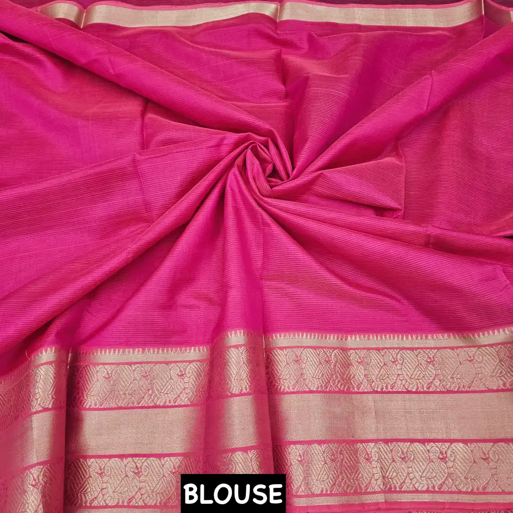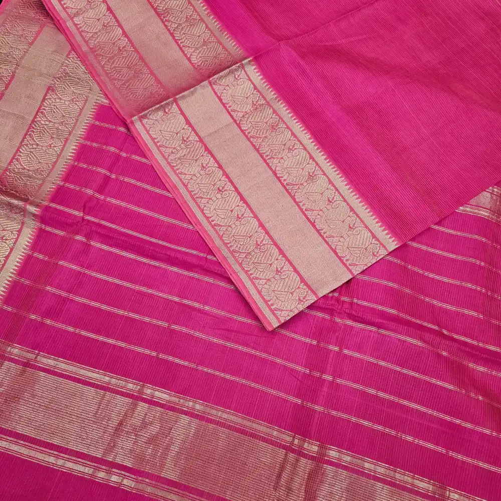 - Pallu: Dark pink Color Zari Stripes