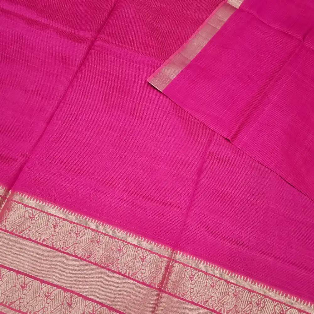 Dark pink Mangalagiri HandLoom Pure Silk Cotton Blend 300k Border Saree
