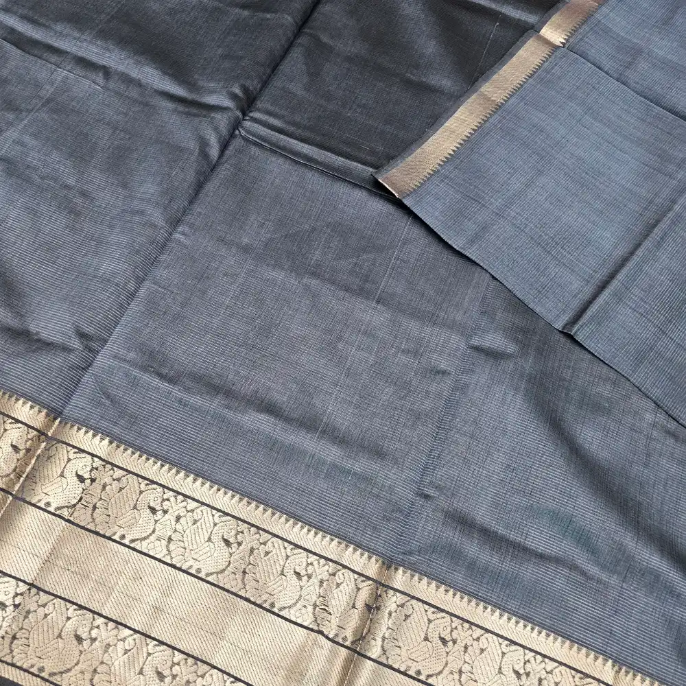 gray Mangalagiri HandLoom Pure Silk Cotton Blend 300k Border Saree