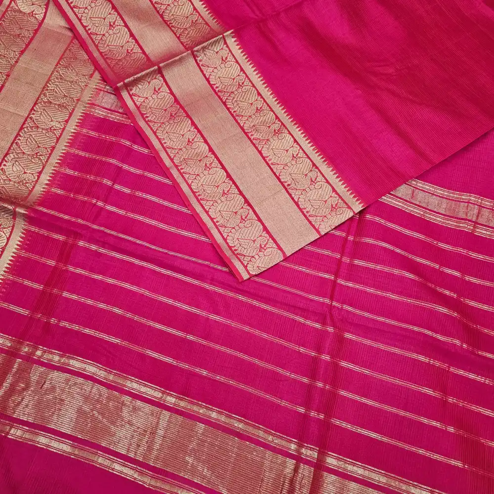Dark Rose Pink Mangalagiri HandLoom Pure Silk Cotton Blend 300k Border Saree