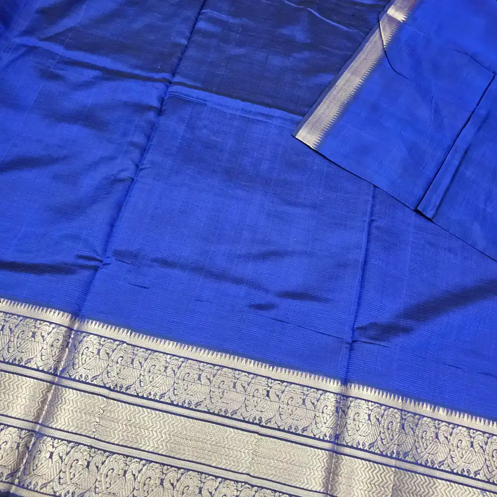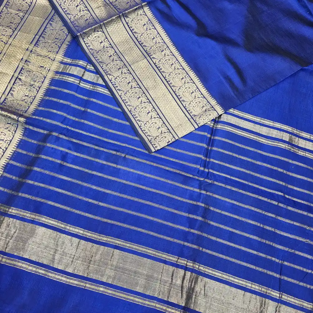 - Pallu: Royal Blue Color Zari Stripes