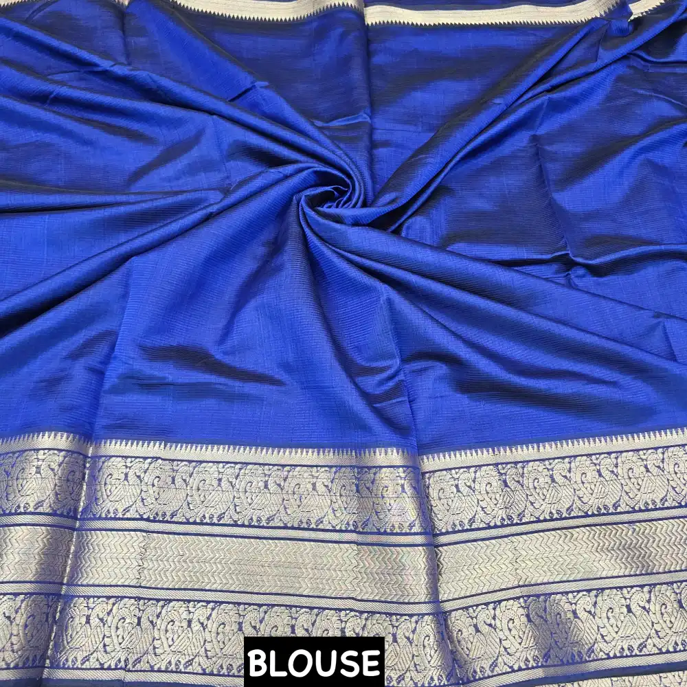 Radiate timeless elegance with this Royal Blue Mangalagiri HandLoom Pure Silk Cotton Blend 300k Border Saree, beautifully crafted with a rich 300K zari border. The luxurious blend of silk and cotton gives it a graceful drape, smooth texture, and subtle sheen. Designed with traditional craftsmanship, this saree exudes sophistication — perfect for festive occasions, weddings, and cultural celebrations.