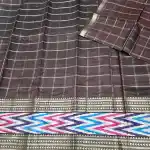 Dark Brown Mangalagiri Handloom Pure Silk Cotton Blend Checks With Ikkath Border Saree