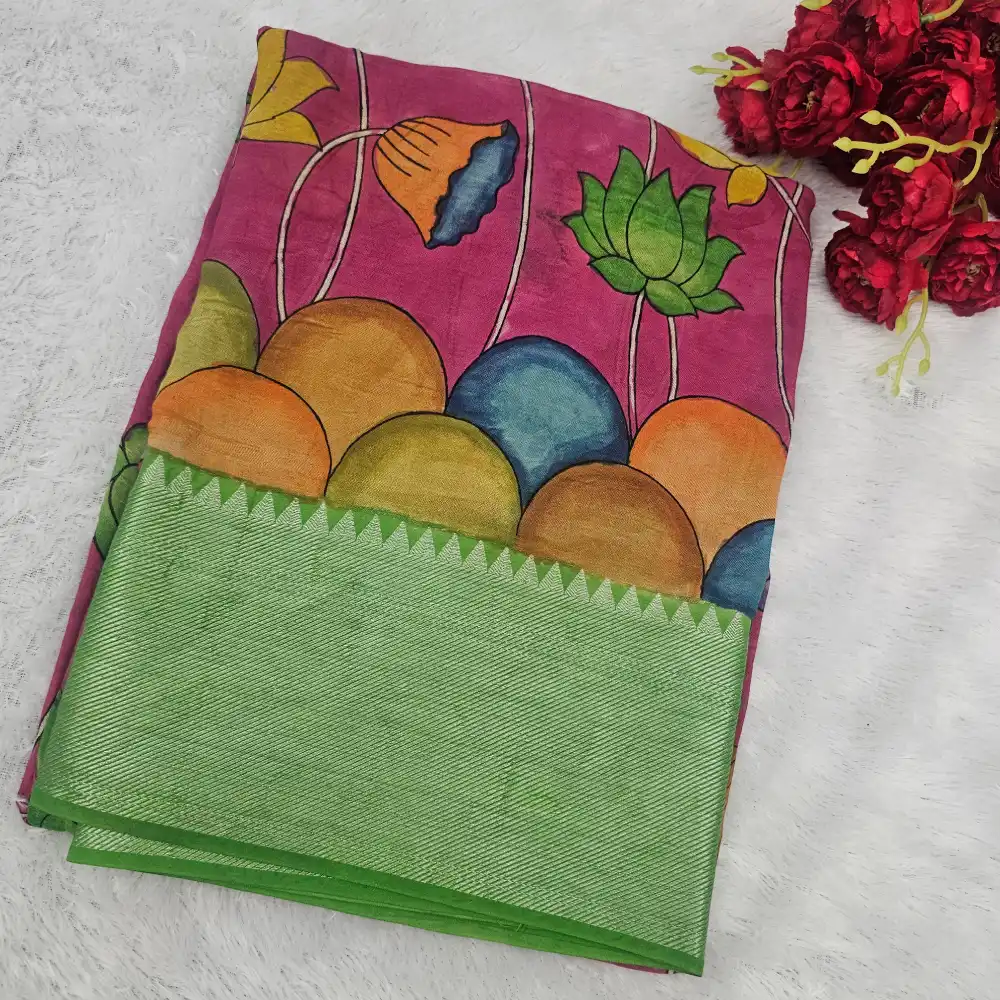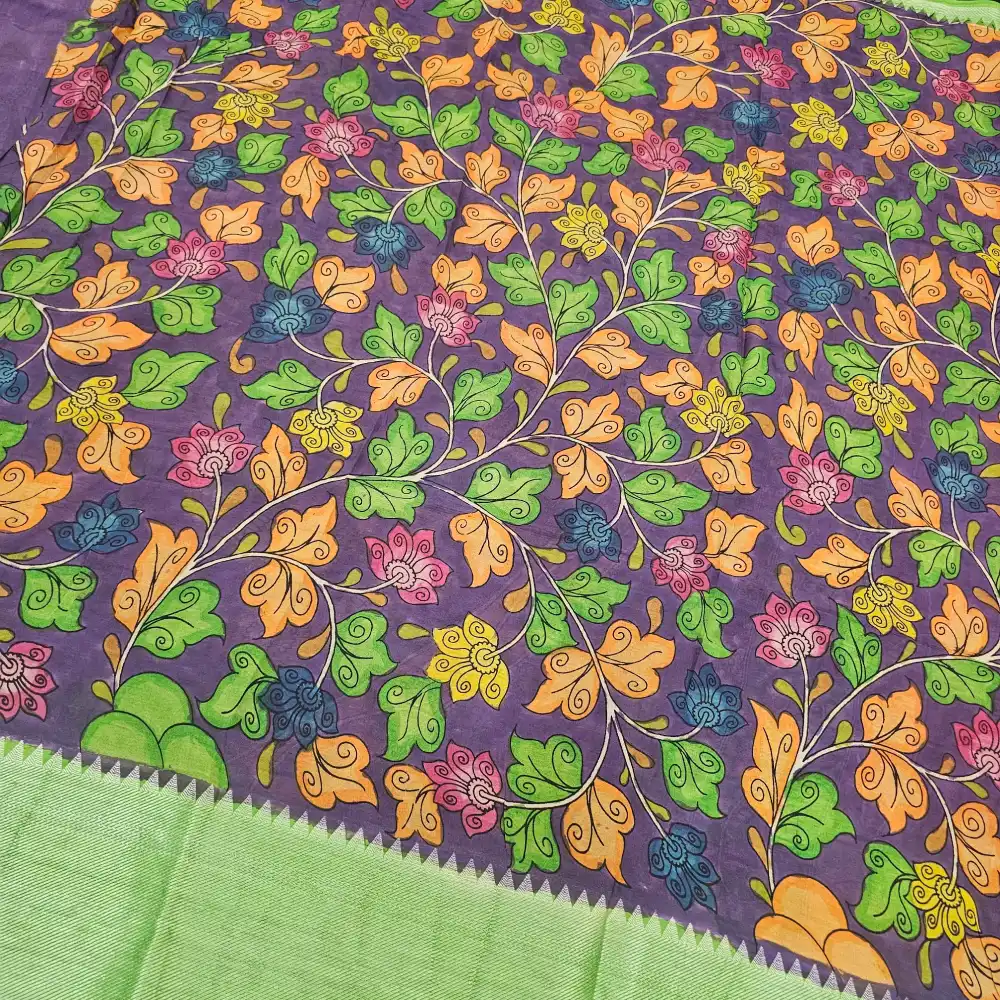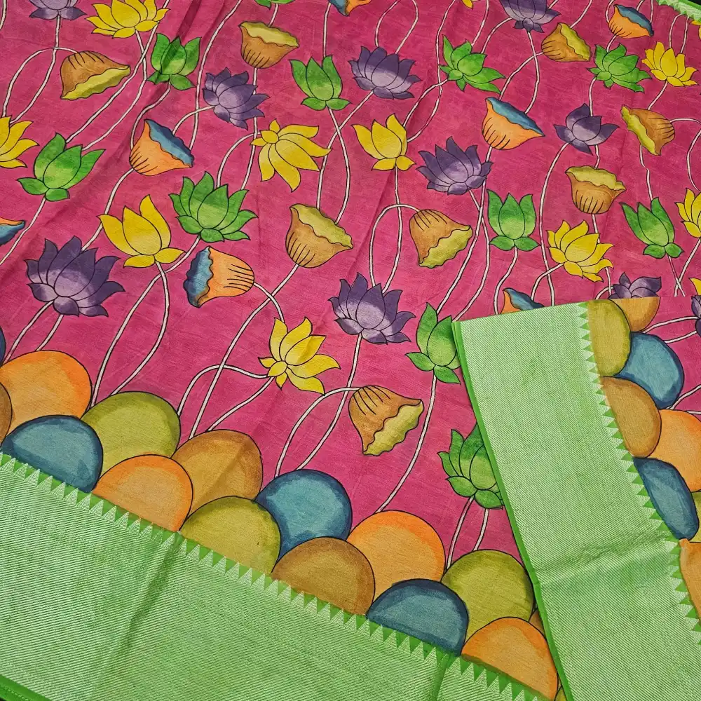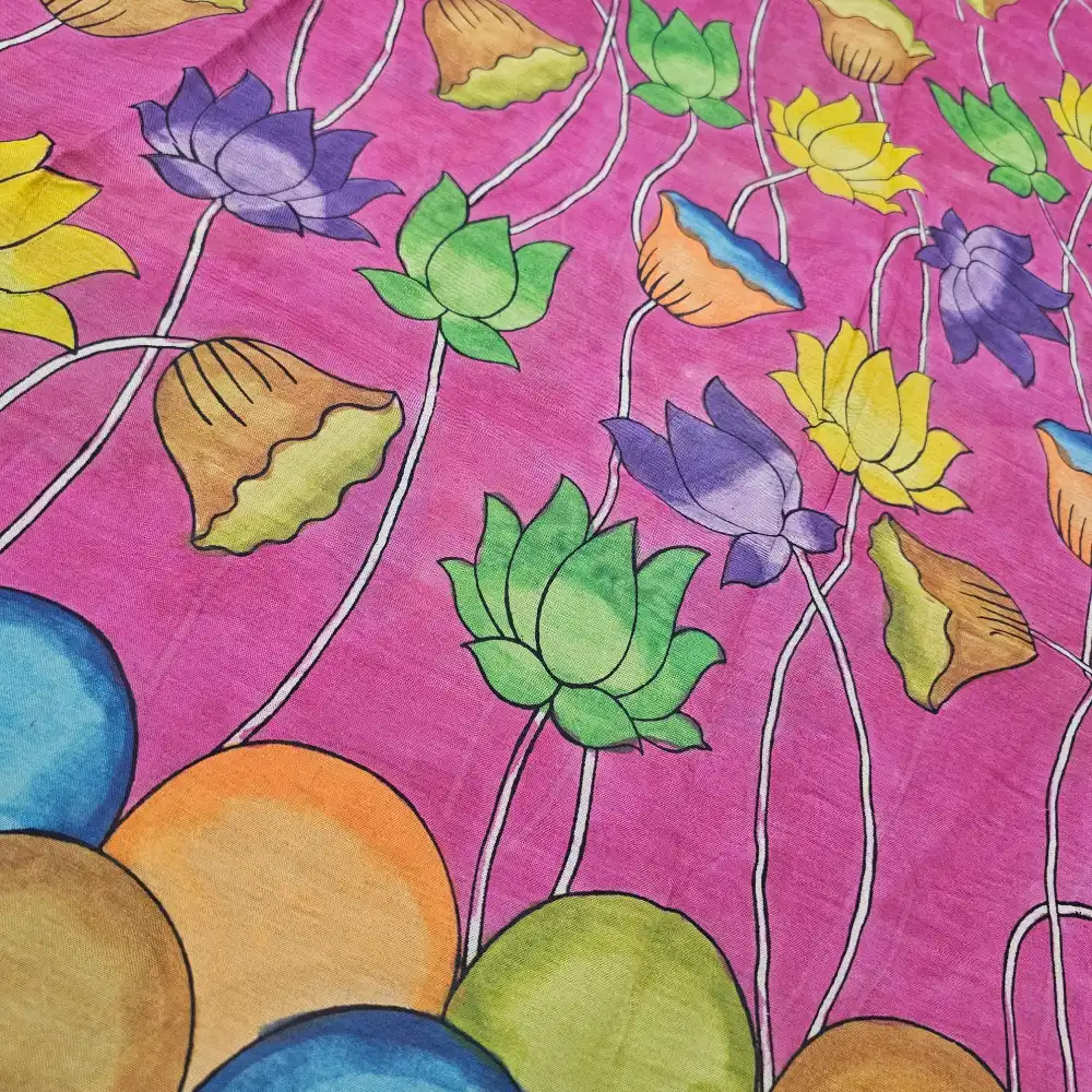 • Hand-painted Pen Kalamkari lotus floral motifs