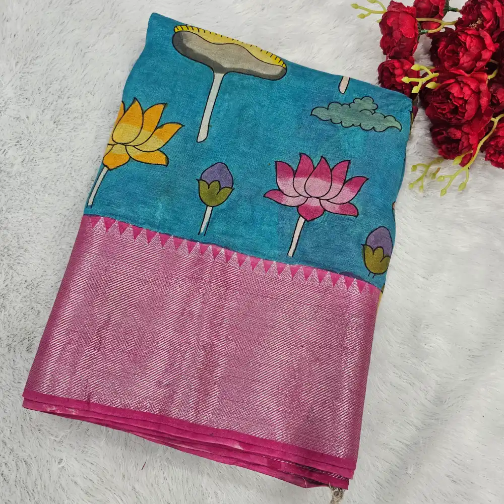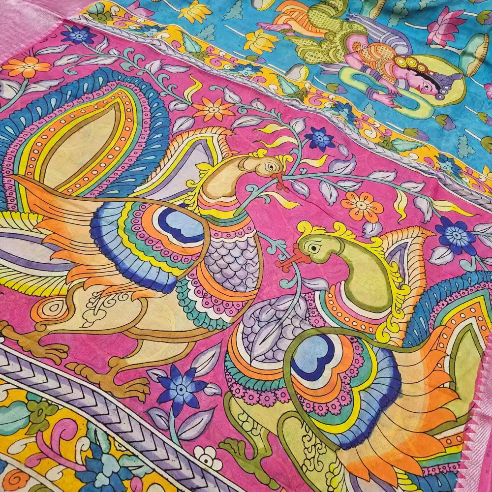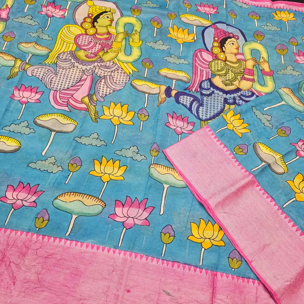 Traditional Pen Kalamkari artistry on premium Mangalagiri weave