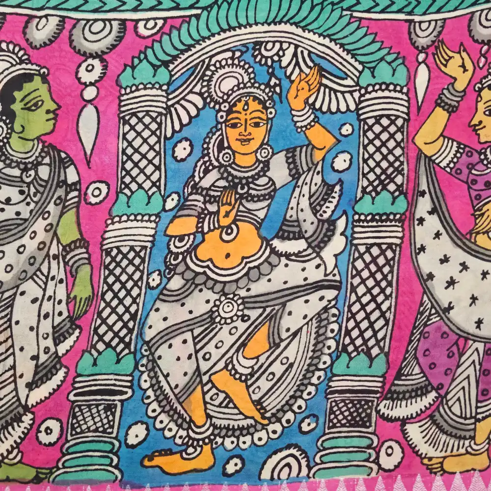Hand-painted Pen Kalamkari god motifs in dancing poses