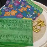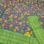 PeacockGreen Mangalagiri Handloom silk cotton blend pen kalamakari saree