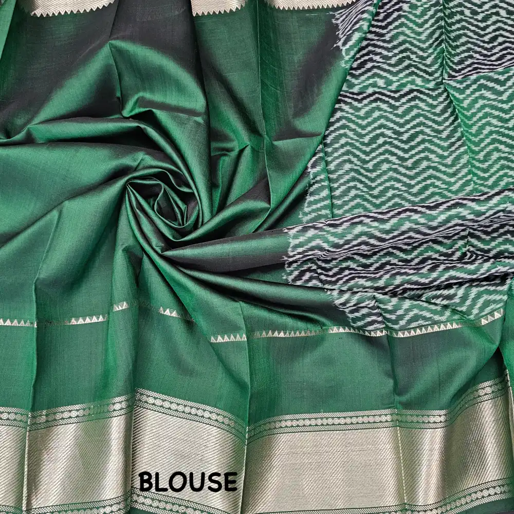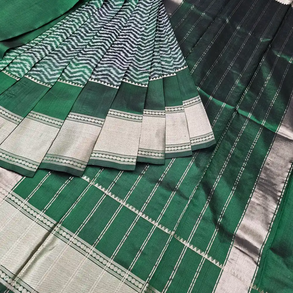 Green Mangalagiri Handloom Pure Silk Ikkat Style Saree