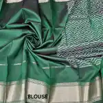 Chic and elegant, this Green Mangalagiri Handloom Pure Silk Saree combines traditional craftsmanship with contemporary style. The saree body is adorned with white zigzag stripes, creating a visually appealing pattern on the rich green base. It is framed with a 250K silver zari border, adding a touch of shimmer and luxury. The pallu and blouse are plain running designs, with the pallu highlighted by delicate silver zari stripes, offering a cohesive and graceful finish.
